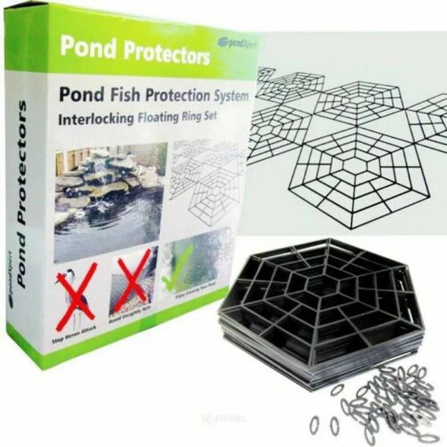 - Interlocking floating grids form a barrier to herons and cats entering your pond.