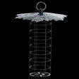 Fill this suet ball dispener with leaf roof with suet balls. The open structure allows the birds to approach the feeder from all sides.