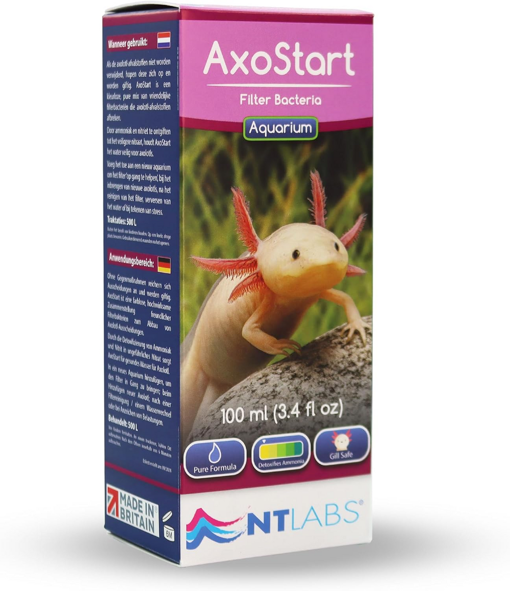- By detoxifying ammonia and nitrite into safer nitrate, AxoStart makes the water safe for Axolotls.