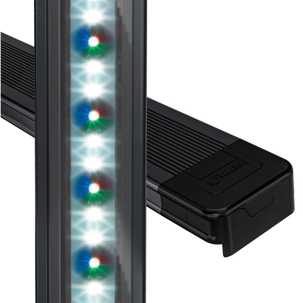Introducing Fluval Aquasky 3.0 LED, the ultimate aquarium lighting solution designed for complete customization and convenience. Featuring RGB + dual bright white LEDs, this innovative light allows you to tailor your color spectrum and dynamic effects to create a stunning aquascape. With its programmable 24-hour light cycle, you can effortlessly mimic natural sun and moon settings, adding to a truly natural viewing experience. Controlled exclusively via the FluvalConnect mobile app, Aquasky 3.0 boasts seamless Bluetooth + Wi-Fi (2.4 GHz) connectivity, ensuring versatile and easy operation. Several mounting options come standard, including extendable brackets, under canopy hanging clips, and a T5/T8 retrofit kit. Expertly engineered in Germany, the light features advanced IP67-rated protection against water, moisture, and dust, along with a high quality glass lens for exceptional lighting performance and durability.