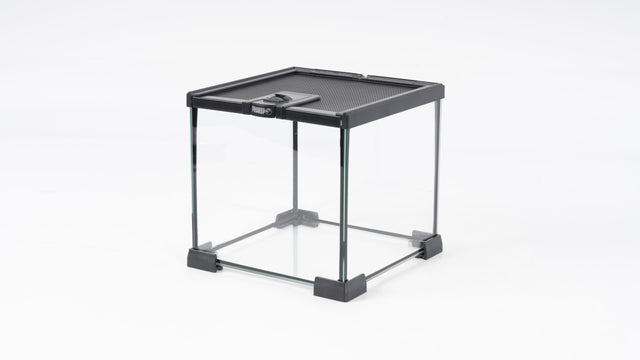 ProRep Mini Terrarium 200 x 200 x 200mm – compact cube terrarium with tempered glass, sliding lid, and raised feet. Safe, durable, and ideal for reptiles, amphibians, or inverts.