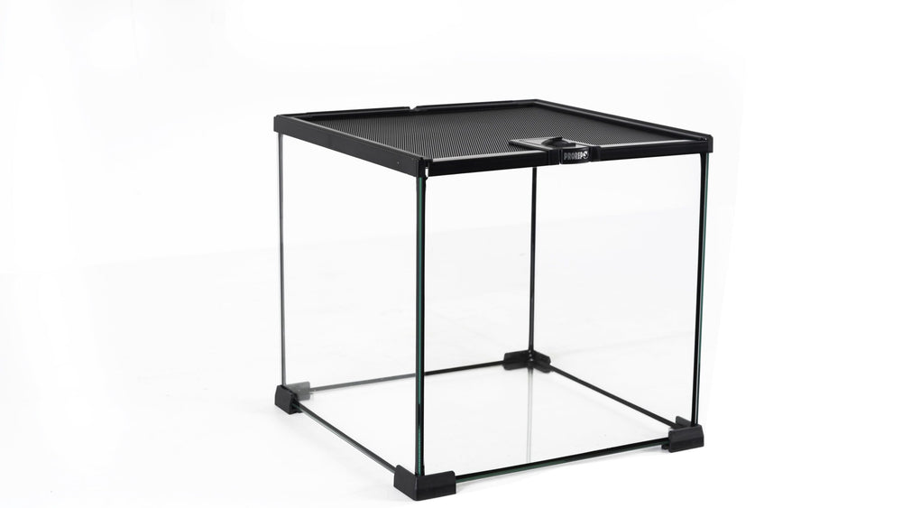 ProRep Mini Terrarium 310 x 310 x 300mm – cube tempered glass enclosure with sliding lid and raised feet. Secure, durable, and versatile for reptiles, amphibians, or inverts.