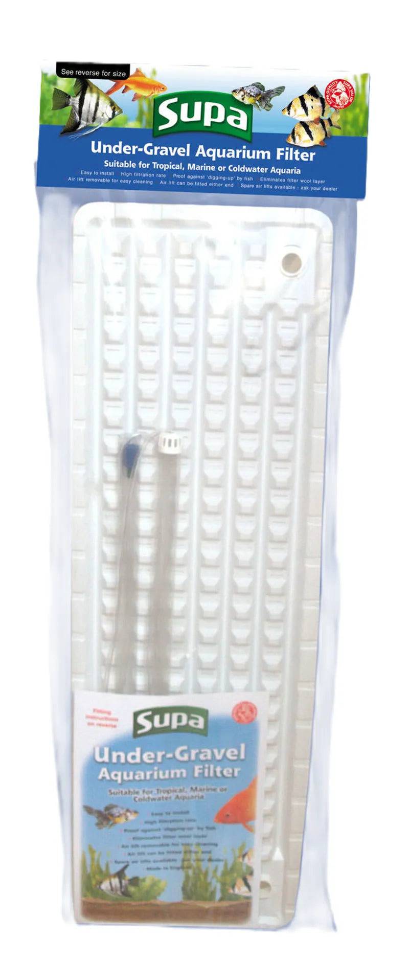 Supa Undergravel Filters work by drawing water from the aquarium through the gravel this acts as a layer of filter media giving a huge surface area for filtration. - Suitable for Tropical Coldwater and Marine Aquariums.