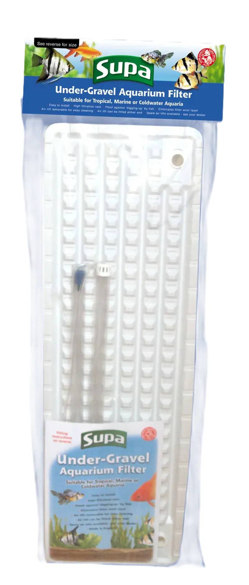 Supa Undergravel Filters work by drawing water from the aquarium through the gravel this acts as a layer of filter media giving a huge surface area for filtration. - Suitable for Tropical Coldwater and Marine Aquariums. -