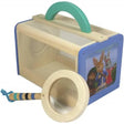 The painted and natural wood design features the Peter Rabbit logo as well as a print of Peter and his friends for added fun!